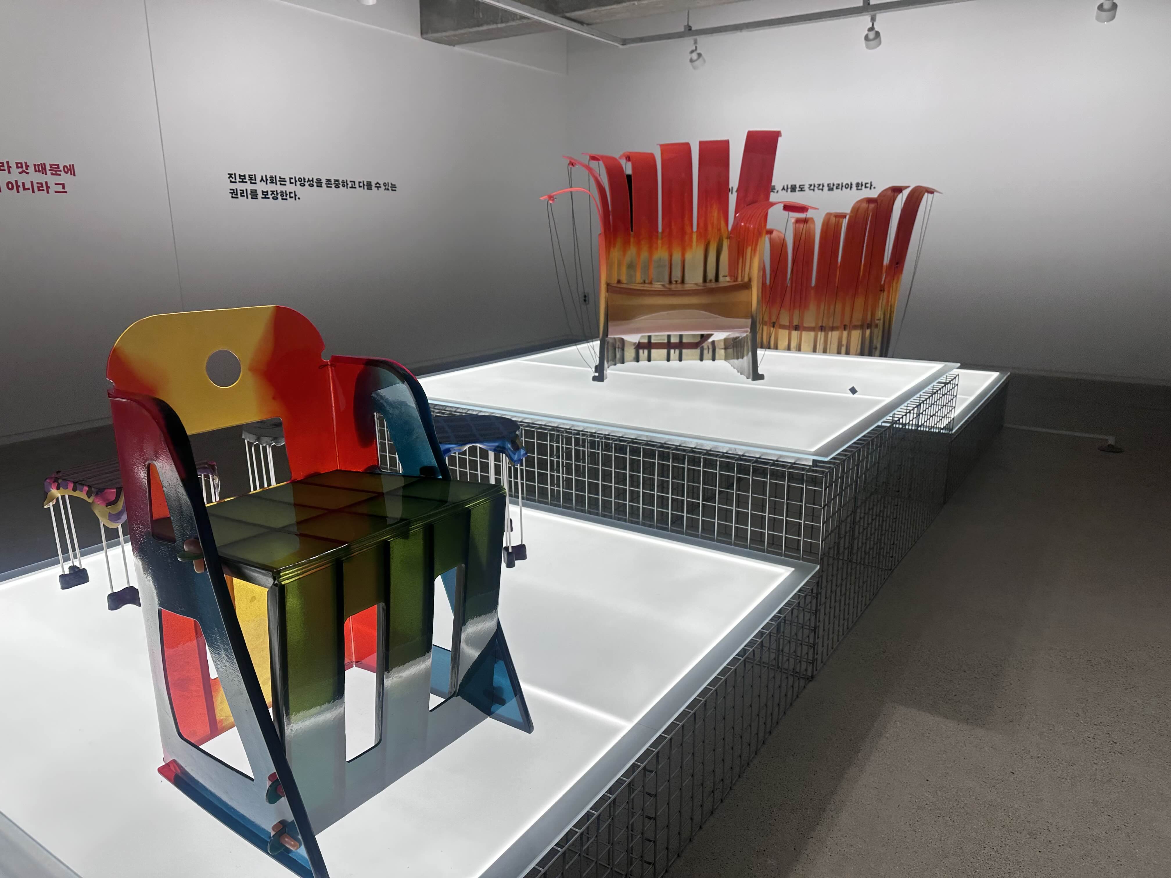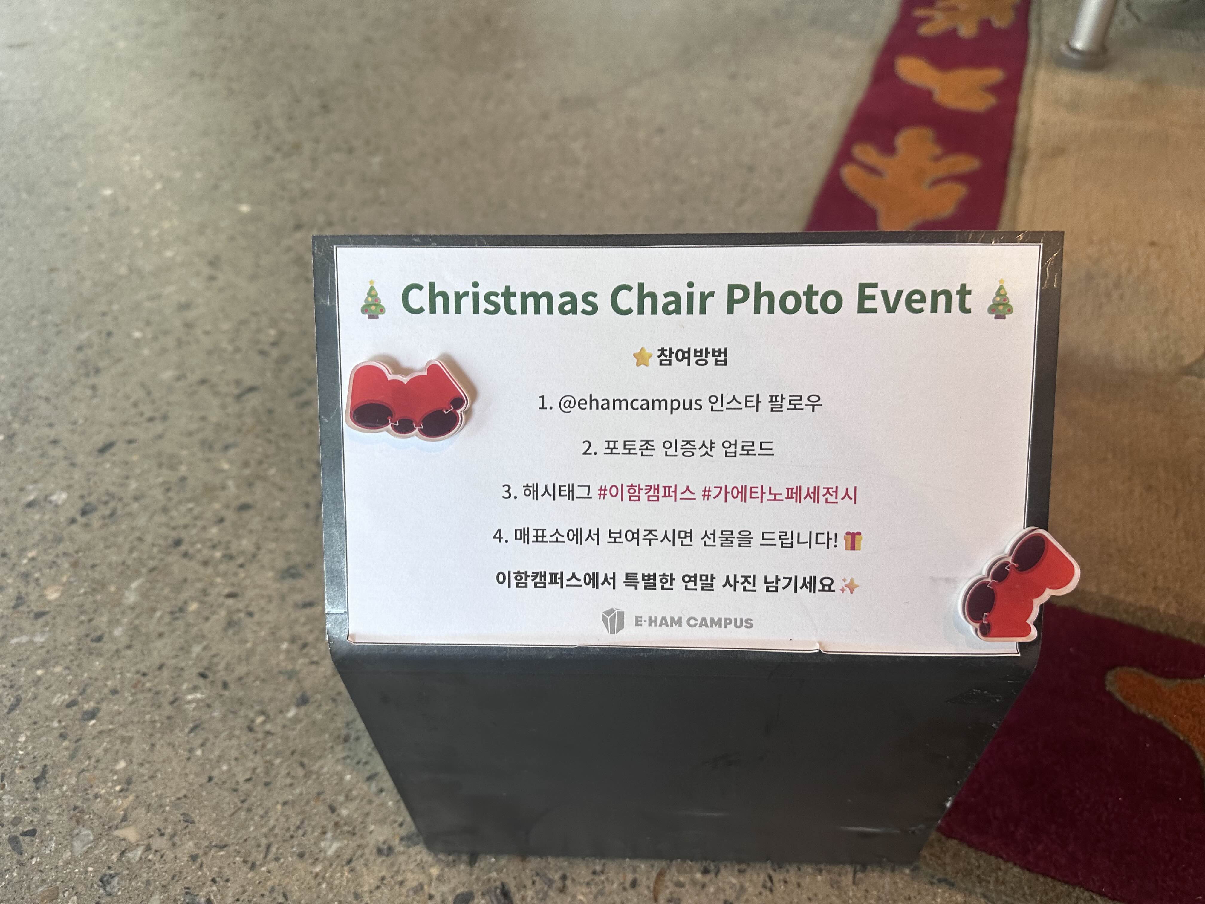 우리는 이탈리아 작가 가에타 노페세의 가구(의자) 전시를 봐서 20000원을 내고 들어갔고, 뒤늦게 온 회원분은 그냥 이함캠퍼사 입장료만 내고 들어오셨는데 이건 카페(페니키아)에서 5000원 할인해서 쓸 수 있고, 전시관람자는 10% 할인해준다.